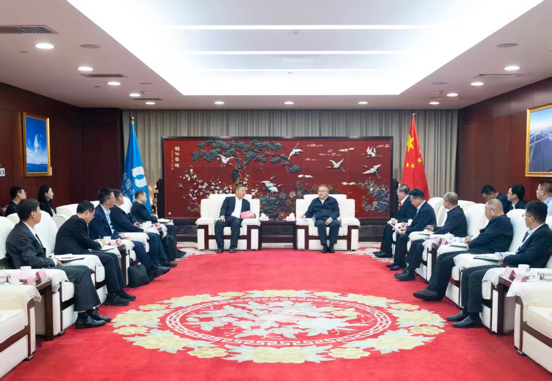 • 10月31日,中國(guó)華能集團(tuán)有限公司董事長(zhǎng)、黨組書記溫樞剛在集團(tuán)公司總部會(huì)見(jiàn)國(guó)家開發(fā)銀行黨委副書記、行長(zhǎng)譚炯。集團(tuán)公司總會(huì)計(jì)師、黨組成員李櫻,國(guó)家開發(fā)銀行黨委委員、副行長(zhǎng)謝泰峰參加會(huì)見(jiàn)。 溫樞剛對(duì)譚炯一行的到來(lái)表示歡迎,對(duì)國(guó)家開發(fā)銀行多年來(lái)給予中國(guó)華能的支持表示感謝,并介紹了公司經(jīng)營(yíng)發(fā)展、業(yè)務(wù)布局等有關(guān)情況。他表示,中國(guó)華能與國(guó)家開發(fā)銀行有著良好合作基礎(chǔ),希望雙方進(jìn)一步鞏固和拓展合作空間,加強(qiáng)多領(lǐng)域、各層級(jí)交流溝通,進(jìn)一步深化在創(chuàng)新性業(yè)務(wù)、國(guó)際業(yè)務(wù)等領(lǐng)域的合作,加強(qiáng)“十五五”規(guī)劃對(duì)接